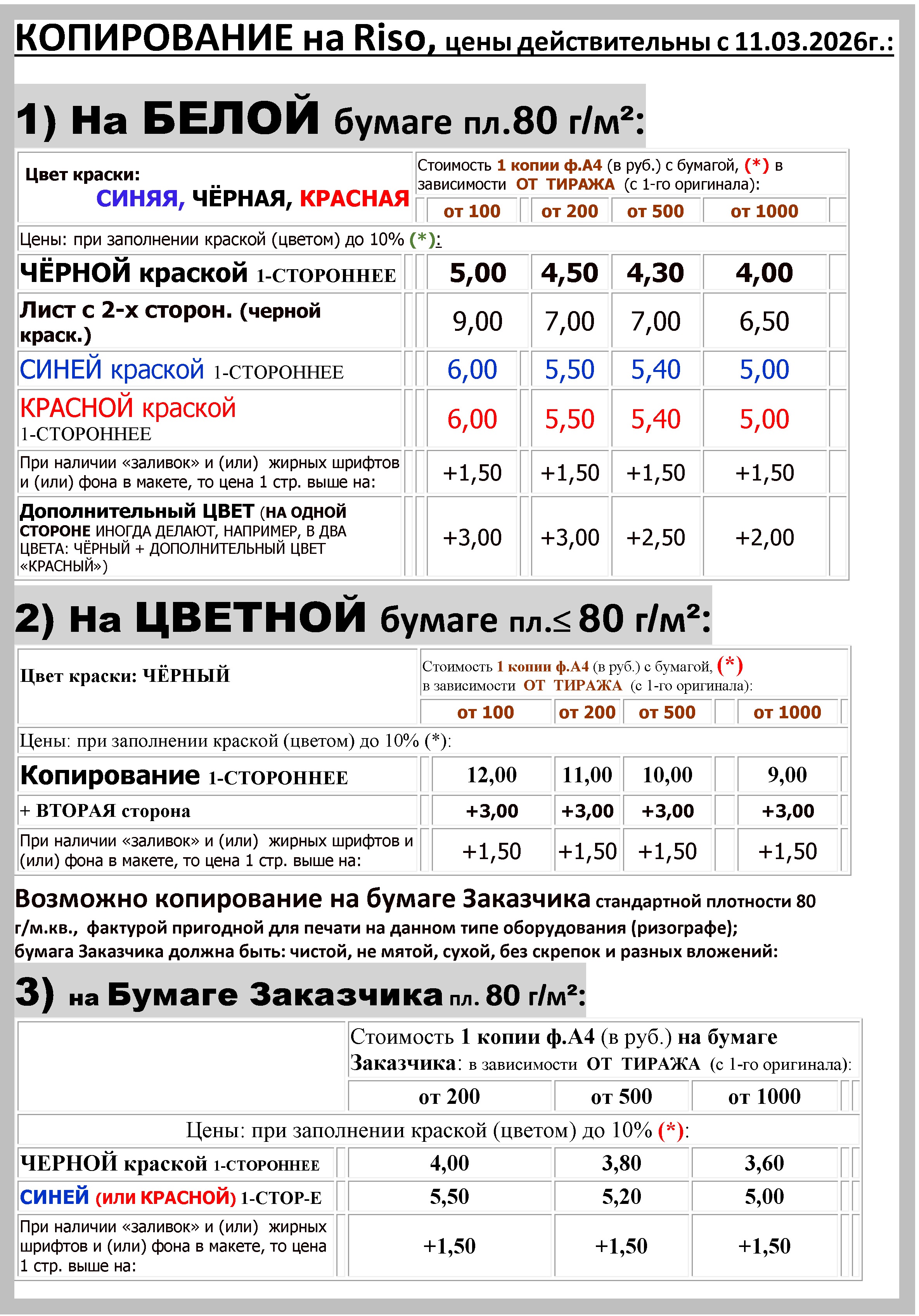 Копирование на Ризографе (Riso) по скорости: от 60 до 120 копий формата А4 за одну минуту.