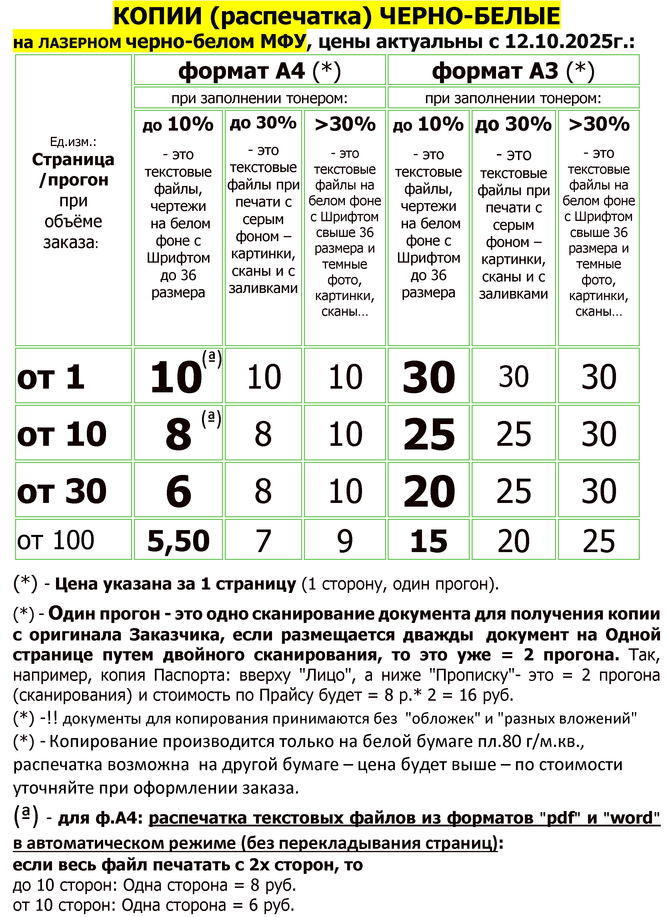 КОПИИ (РАСПЕЧАТКА) черно-белые, ф.А4, А3