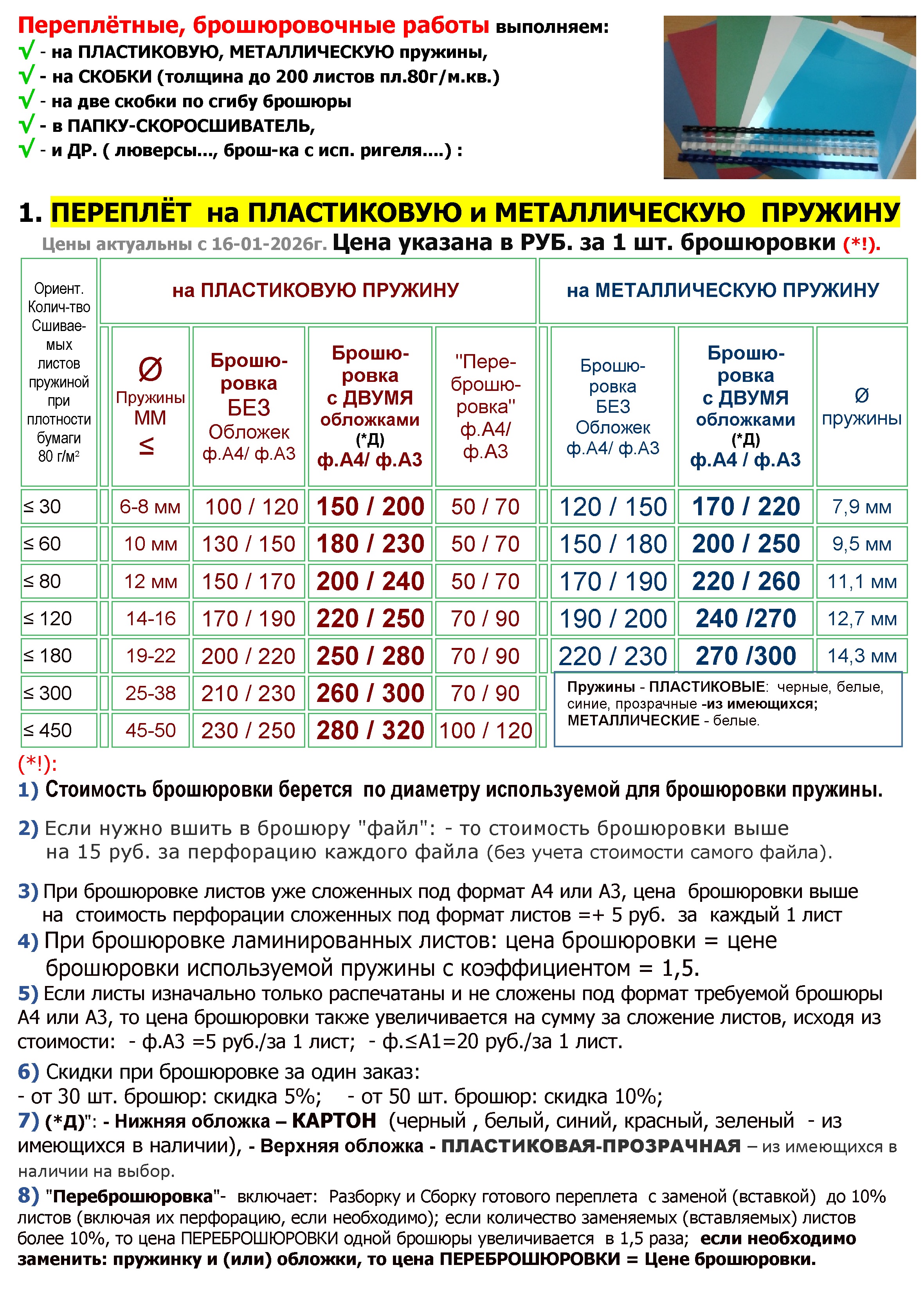 3. количество скрепляемых страниц в Брошюре до 70 страниц ф.А5 (это 17 листов ф.А4 с печатью с 2-х сторон):